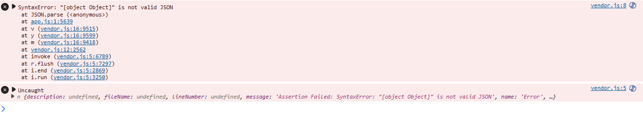 这时可以看到变量 t 已经是一个 对象,所以 JSON.parse(t) 一定会报错。
