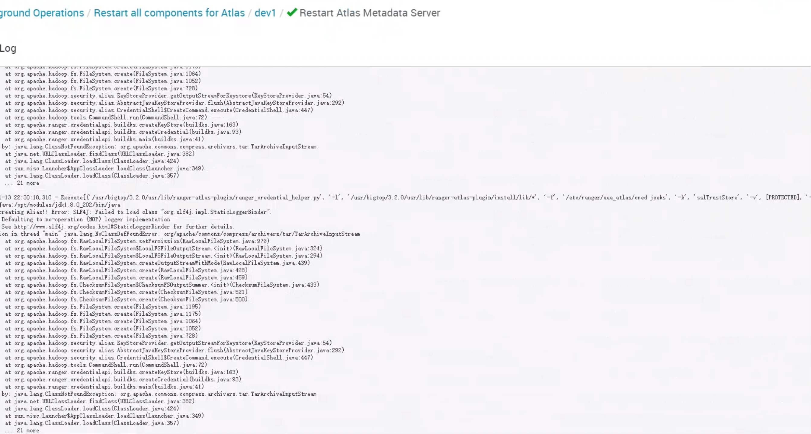 在当前环境中 Atlas 虽然可以正常启动,但在 Ranger Atlas Plugin 激活后,日志里仍会出现一些不太理想的报错。