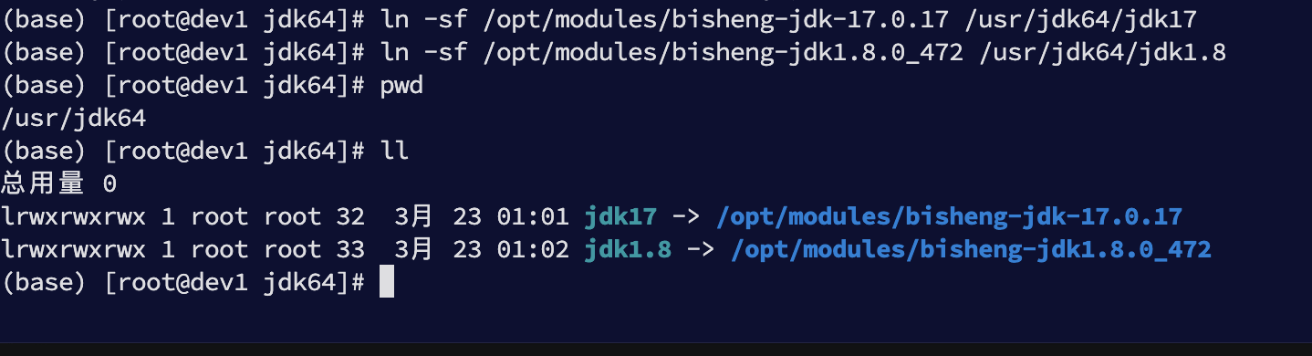 ln -sf /opt/modules/bisheng-jdk-17.0.17 /usr/jdk64/jdk17