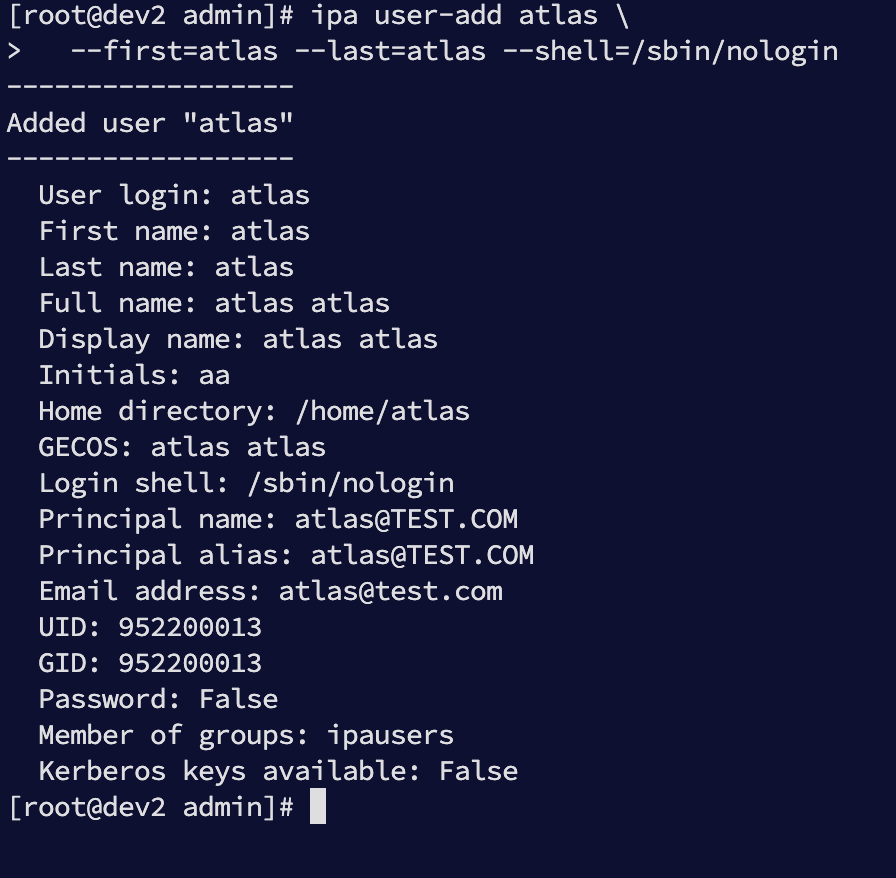 --first=atlas --last=atlas --shell=/sbin/nologin